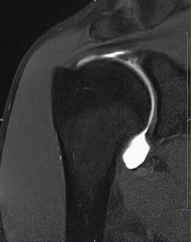 - MR-Arthrographie – nach örtlicher Betäubung und gründlicher Desinfektion der Haut wird unter Lagekontrolle mit Röntgen-Durchleuchtung eine kleine Nadel in den Gelenkraum positoniert und darüber ein MR-taugliches Kontrastmittel in den Gelenkraum gespritzt. Danach wird die Nadel entfernt. Anschließend erfolgt die MRT des Gelenkes. Diese Methode stellt kleine anatomische Strukturen des Gelenkraumes verbessert dar, z.B. zur Therapieplanung vor Arthroskopie bei Sportverletzungen der Schulter oder Gelenkinstabilität.